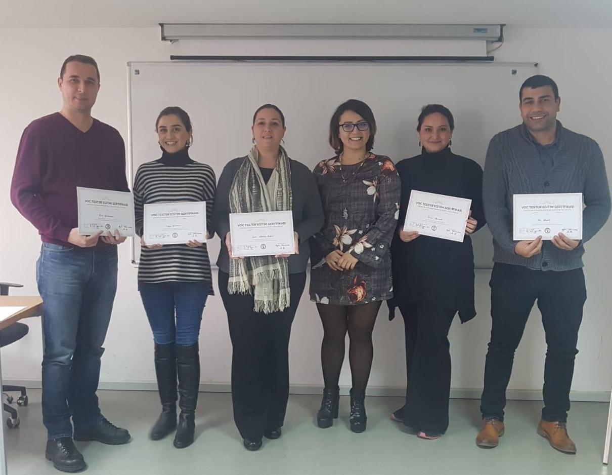 VOC TESTER Yazılım Sisteminin etkin kullanımı kapsamında düzenlenen eğitim toplantımızda İzmir Ticaret Odası Sağlık ve Eğitim Vakfı temsilcilerine sertifikaları teslim edildi.