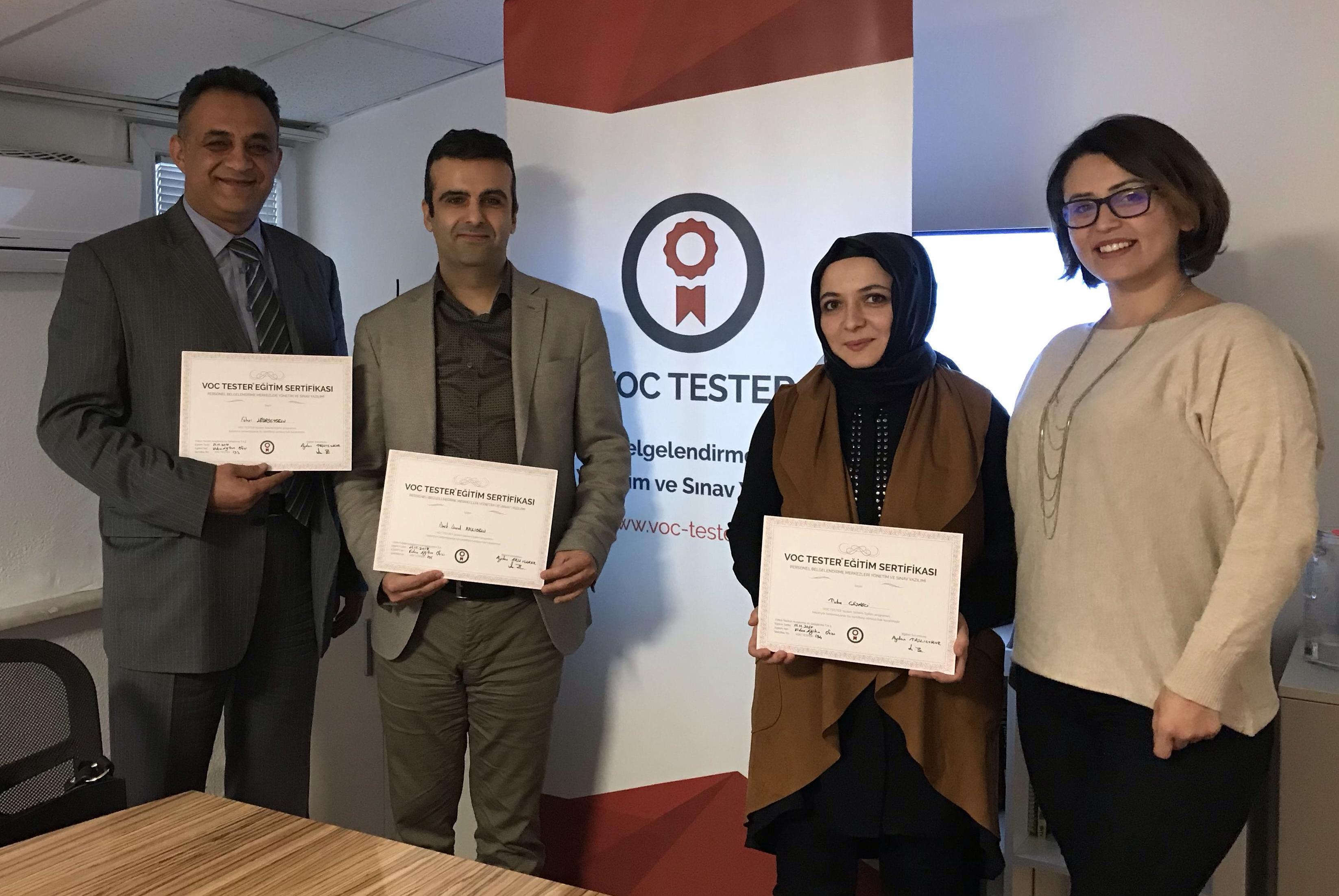 VOC TESTER Yazılım Sisteminin etkin kullanımı kapsamında düzenlenen eğitim toplantımızda KARSEM Sınav ve Belgelendirme Merkezi temsilcilerine sertifikaları teslim edildi.