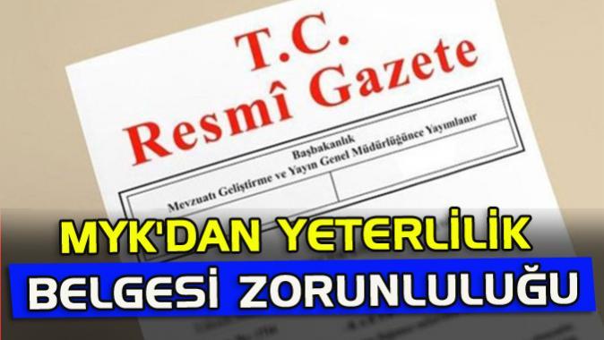 Resmi Gazetede yayınlanmış olan 5544 sayılı Kanun gereğince; tehlikeli ve çok tehlikeli sınıfa giren ve Aile, Çalışma ve Sosyal Hizmetler Bakanlığınca yayımlanan tebliğlerde belirtilen mesleklerde MYK Mesleki Yeterlilik Belgesi olmayan kişiler çalıştırılamamaktadır.