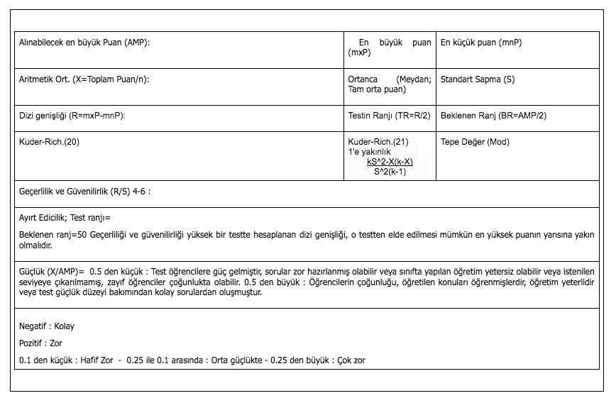 TEST ANALİZ TABLOSU