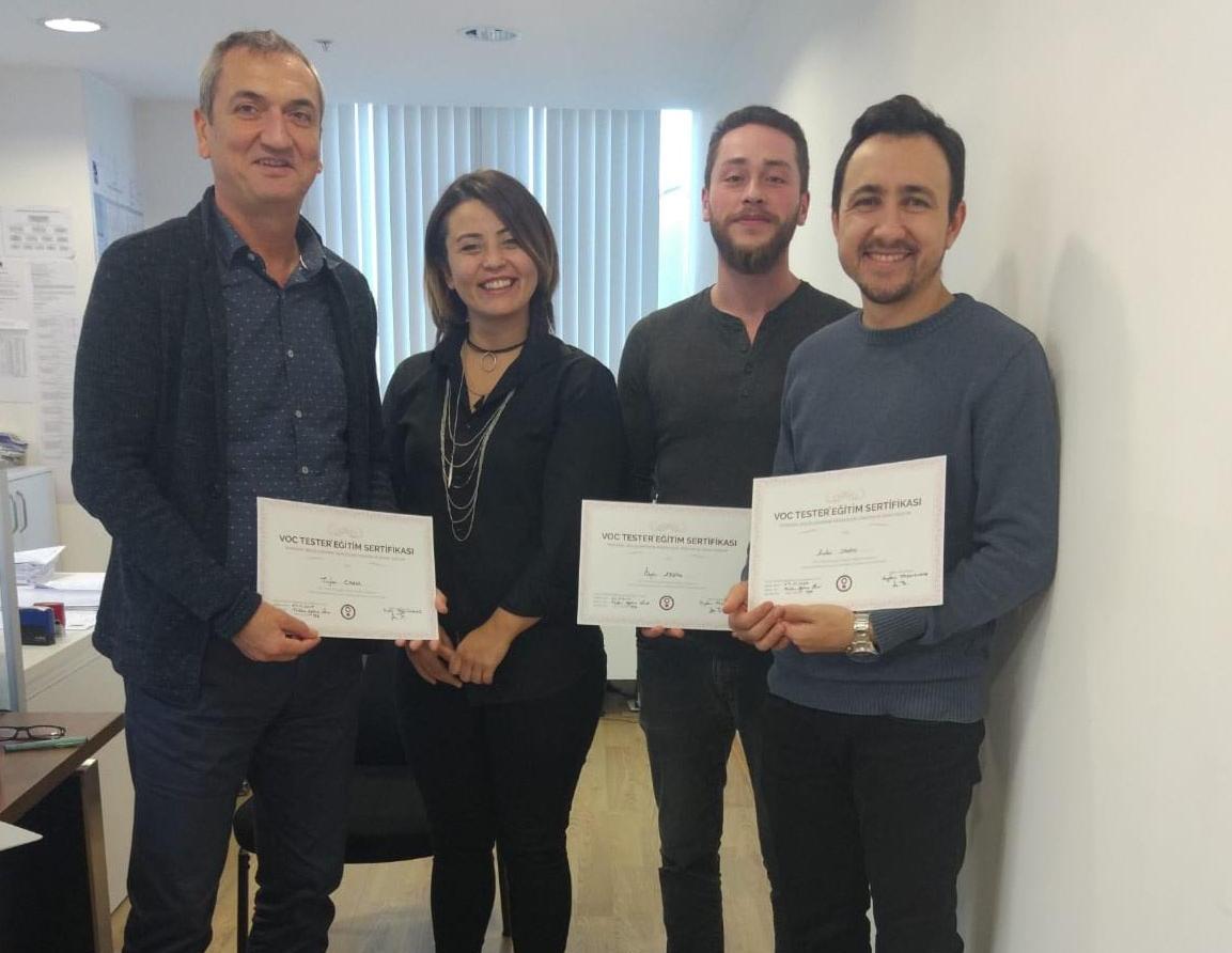 VOC TESTER Yazılım Sisteminin etkin kullanımı kapsamında düzenlenen eğitim toplantımızda TÜRKLİM Mesleki Yeterlilik ve Belgelendirme Merkezi temsilcilerine sertifikaları teslim edildi.